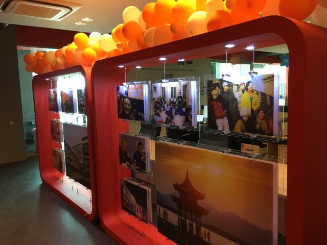 一進門,記者就看到一面紅框照片墻,馬云和普京在圣彼得堡經(jīng)濟論壇上的合影非常醒目。在明亮的落地窗前,“雙十一”的紅色標志讓記者恍惚回到了中國。