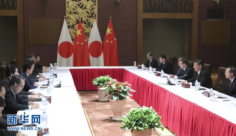 ? ?11月11日,國(guó)家主席習(xí)近平在越南峴港會(huì)見日本首相安倍晉三。新華社記者 馬占成 攝