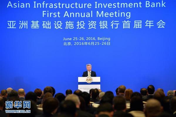 【初露崢嶸】2016年6月25日亞投行行長(zhǎng)金立群在北京宣布,亞投行董事會(huì)已經(jīng)通過批準(zhǔn)了該行首批四個(gè)項(xiàng)目總計(jì)5.09億美元的貸款,其中三個(gè)項(xiàng)目是與世界銀行、亞洲開發(fā)銀行等聯(lián)合融資,涉及孟加拉國(guó)、印度尼西亞、巴基斯坦和塔吉克斯坦的能源、交通和城市發(fā)展等領(lǐng)域。成立僅半年,亞投行用實(shí)際行動(dòng)表明了其投資的開放性和包容度,曬出了一份漂亮的“成績(jī)單”。圖為2016年6月25日,金立群行長(zhǎng)在亞投行首屆年會(huì)開幕式上致辭。