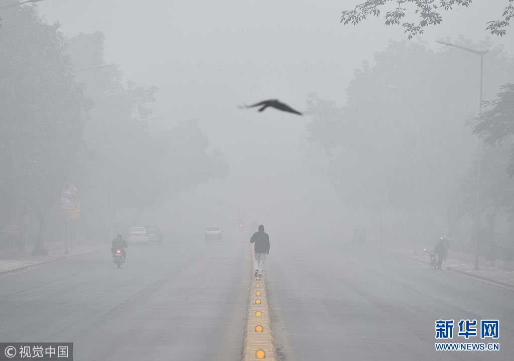 當(dāng)?shù)貢r間1月2日,印度新德里遭遇冷空氣及強(qiáng)霧霾天氣,能見度低。 (圖片來源:視覺中國)