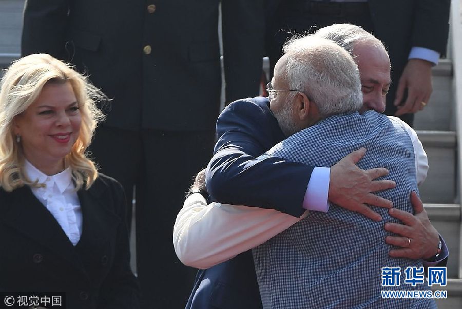 當?shù)貢r間1月14日,印度新德里,以色列總理內(nèi)塔尼亞胡抵達印度展開訪問。(圖片來源:視覺中國)