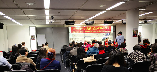 當(dāng)?shù)貢r間20日下午,近百名旅居德國法蘭克福的華人在德國法蘭克福機場舉行會議,為首位競選法蘭克福市市長的德國華人楊明先生吶喊助威,組織選票。