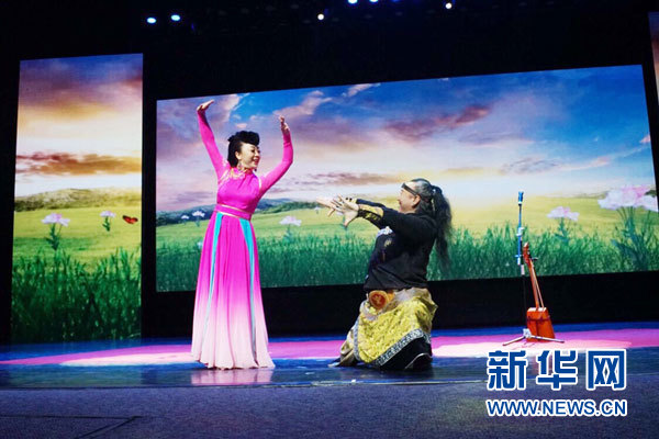 今年6歲的小朋友程錦龍被口技手影戲《動(dòng)物世界》深深吸引,隨著口技表演家許國立在現(xiàn)場不斷變換動(dòng)物,他跟著認(rèn)起了每個(gè)動(dòng)物,大呼好玩;胡琴演奏家季節(jié)無伴奏演奏《二泉映月》,意境深遠(yuǎn)、樂音悠長,現(xiàn)場觀眾不自覺跟著哼唱起來;青年女高音歌唱家周旋聲情并茂演唱完《絨花》,臺下觀眾為她送上鮮花表達(dá)喜愛之情;嗩吶演奏家侯彥秋的激情吹奏及雜技演員王建磊的花樣空竹,都讓現(xiàn)場觀眾如癡如醉;在藏族歌唱組合雪蓮三姐妹歌聲的配合下,藝術(shù)團(tuán)代表為現(xiàn)場貴賓和觀眾敬獻(xiàn)哈達(dá);特別是來自中國雜技團(tuán)的雜技演員表演《靈動(dòng)》《球技》《協(xié)奏黑白狂想》等緊張刺激的雜技時(shí),引來陣陣驚嘆。