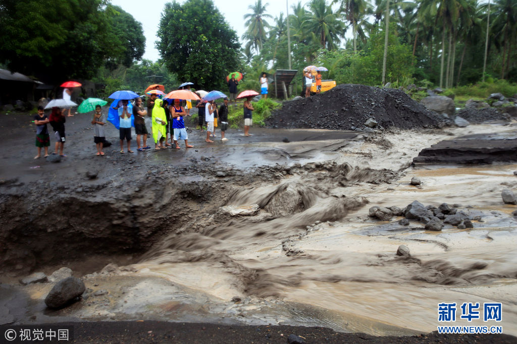 菲律賓馬榮火山持續(xù)噴發(fā) 火山灰落入河中變泥漿