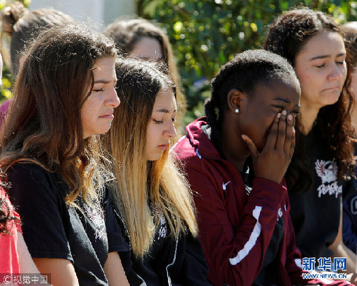 當(dāng)?shù)貢r(shí)間2018年2月15日,美國佛羅里達(dá)州波姆龐帕諾灘,民眾悼念槍擊案遇難者。當(dāng)?shù)貢r(shí)間14日下午2點(diǎn)25分左右,美國佛羅里達(dá)州南部帕克蘭一所高中發(fā)生槍擊案,目前已致至少17人死亡,多人受傷。(圖片來源:視覺中國)