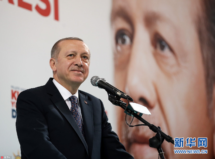 土耳其總統(tǒng)埃爾多安出席集會 手持橄欖枝發(fā)表講話