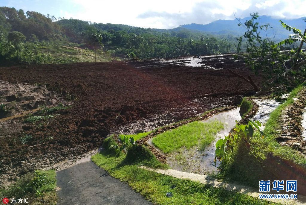 當地時間2018年2月22日,印尼中爪哇省Brebes,當地稻田遭山體滑坡,事故發生時有數名農民在田中勞作,造成5人死亡15人失蹤。 (圖片來源:東方IC)