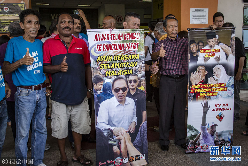 2018年5月11日訊,馬來西亞新當選總理馬哈蒂爾表示,最高元首已經同意特赦前副總理安瓦爾,希盟方面將盡快推動有關程序。安瓦爾以前頗受馬哈蒂爾賞識和提攜,被外界視為馬哈蒂爾的接班人。然而,兩人后來鬧僵,馬哈蒂爾1998年革除安瓦爾的副總理之職。隨后幾年間,安瓦爾因貪腐和雞奸罪名入獄。路透社報道,根據馬哈蒂爾與安瓦爾“談妥”的條件,馬哈蒂爾贏得選舉后將向最高元首尋求特赦安瓦爾,待安瓦爾出獄后,便退位讓賢,改由安瓦爾出任總理。不過,馬來西亞法律規定出獄者5年內不得參政,即便獲特赦也要參加國會議席補選才有望重返政壇。(圖片來源:視覺中國)