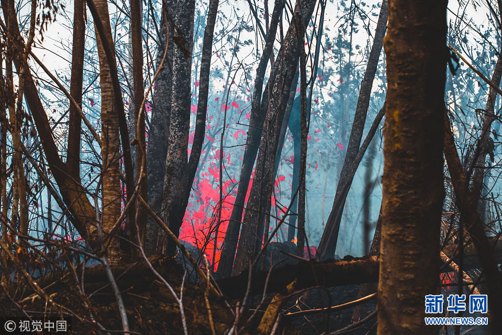5月13日,美國夏威夷,基拉韋厄火山仍處于持續(xù)噴發(fā)的狀態(tài),火山周圍又出現了新的噴發(fā)裂縫。(圖片來源:視覺中國)