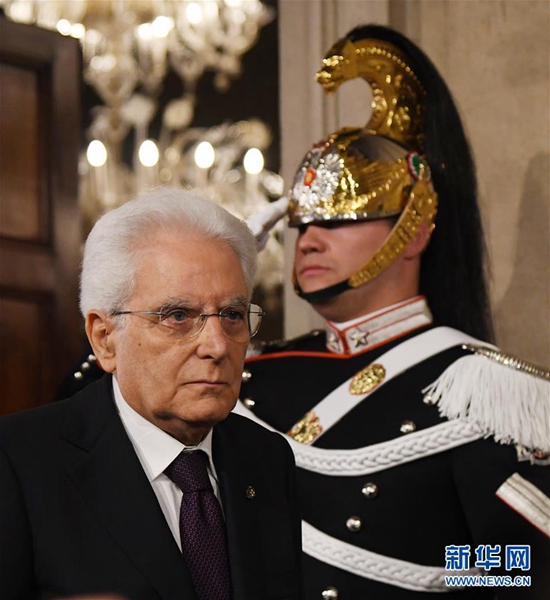 5月27日,在意大利首都羅馬,意總統(tǒng)馬塔雷拉出席新聞發(fā)布會(huì)。據(jù)當(dāng)?shù)孛襟w報(bào)道,意大利新任總理孔特27日晚間與總統(tǒng)馬塔雷拉會(huì)面并提交擬定的內(nèi)閣成員名單時(shí),馬塔雷拉否決了由意大利聯(lián)盟黨和五星運(yùn)動(dòng)力推的持疑歐立場(chǎng)的經(jīng)濟(jì)學(xué)家保羅·薩沃納出任財(cái)政部長。孔特向總統(tǒng)提出放棄組閣任務(wù)請(qǐng)求,請(qǐng)求得到總統(tǒng)確認(rèn)。新華社發(fā)(阿爾貝托·林格里亞攝)