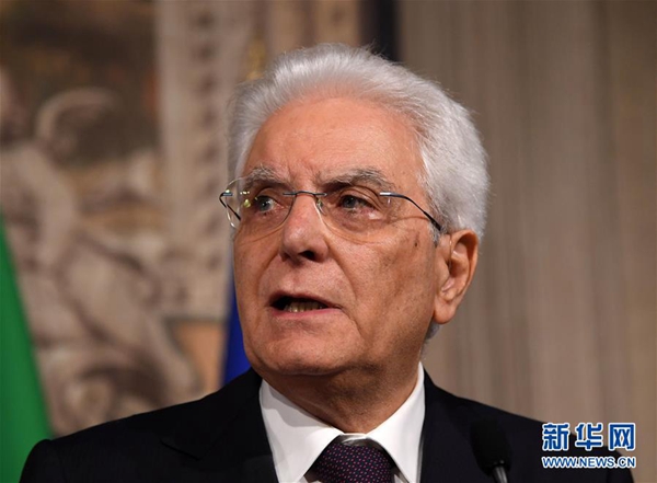 5月27日,在意大利首都羅馬,意總統(tǒng)馬塔雷拉出席新聞發(fā)布會(huì)。據(jù)當(dāng)?shù)孛襟w報(bào)道,意大利新任總理孔特27日晚間與總統(tǒng)馬塔雷拉會(huì)面并提交擬定的內(nèi)閣成員名單時(shí),馬塔雷拉否決了由意大利聯(lián)盟黨和五星運(yùn)動(dòng)力推的持疑歐立場(chǎng)的經(jīng)濟(jì)學(xué)家保羅·薩沃納出任財(cái)政部長(zhǎng)。孔特向總統(tǒng)提出放棄組閣任務(wù)請(qǐng)求,請(qǐng)求得到總統(tǒng)確認(rèn)。新華社發(fā)(阿爾貝托·林格里亞攝)