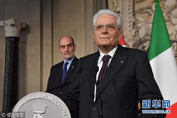 5月7日,意大利羅馬,意大利總統(tǒng)塞爾焦·馬塔雷拉7日召集新一輪組閣談判并出席新聞發(fā)布會。新華網(wǎng)發(fā)