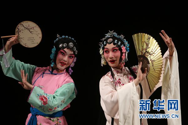 6月7日,在白俄羅斯東部城市莫吉廖夫,兩位中國(guó)戲曲演員在表演昆曲《牡丹亭》。新華網(wǎng)發(fā) 魏忠杰 攝
