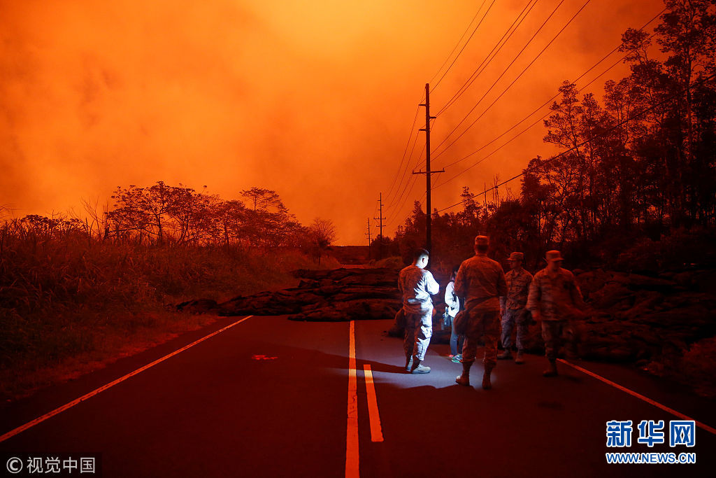 6月8日,美國夏威夷,基拉韋厄火山持續噴發,夜空被巖漿照亮。(圖片來源:視覺中國)