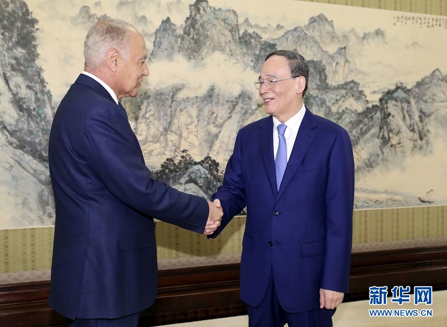 7月9日,國(guó)家副主席王岐山在北京中南海會(huì)見阿拉伯國(guó)家聯(lián)盟秘書長(zhǎng)蓋特。新華社記者 丁林 攝