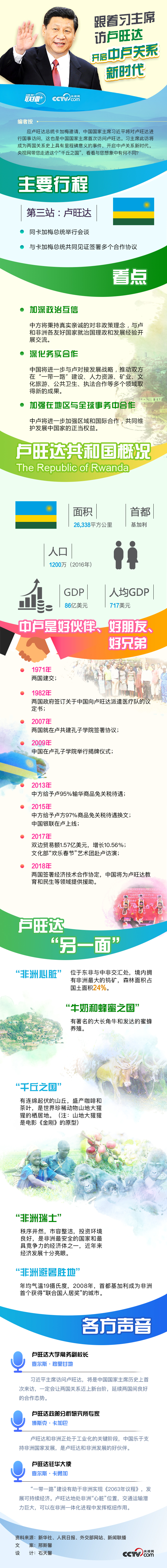 中國(guó)和盧旺達(dá)是親密的兄弟,友好的朋友和緊密的伙伴。中盧建交47年來,兩國(guó)政治互信不斷增強(qiáng),雙方各層次交流頻繁,中國(guó)更是歡迎盧旺達(dá)搭乘中國(guó)經(jīng)濟(jì)快車,分享中國(guó)改革、開放、發(fā)展的成果。