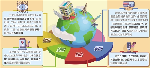 隨著智能制造、物聯(lián)網(wǎng)及3D打印等先進(jìn)制造技術(shù)不斷發(fā)展和普及,其對(duì)經(jīng)濟(jì)的帶動(dòng)促進(jìn)作用愈發(fā)明顯。全球主要經(jīng)濟(jì)體正在爭先搶占這些先進(jìn)制造技術(shù)的科技制高點(diǎn),并紛紛在通過數(shù)字化、智能化改造傳統(tǒng)制造業(yè)的同時(shí),結(jié)合本國產(chǎn)業(yè)特色,聚焦優(yōu)勢(shì)領(lǐng)域,打造先進(jìn)制造業(yè)王牌。在這一形勢(shì)下,美、日、歐洲等國家和地區(qū)在先進(jìn)制造業(yè)領(lǐng)域的標(biāo)準(zhǔn)設(shè)定、技術(shù)研發(fā)、產(chǎn)品創(chuàng)新、市場(chǎng)轉(zhuǎn)化方面都制定了各具特色的路線圖。