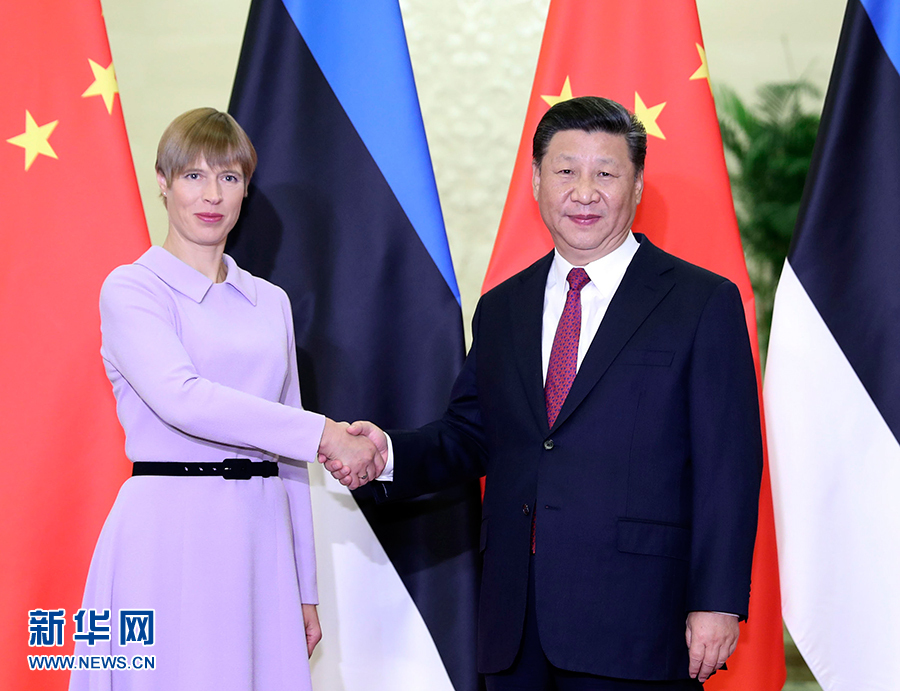 9月18日,國家主席習(xí)近平在北京人民大會堂會見來華出席夏季達(dá)沃斯論壇的愛沙尼亞總統(tǒng)卡柳萊德。 新華社記者丁林?jǐn)z
