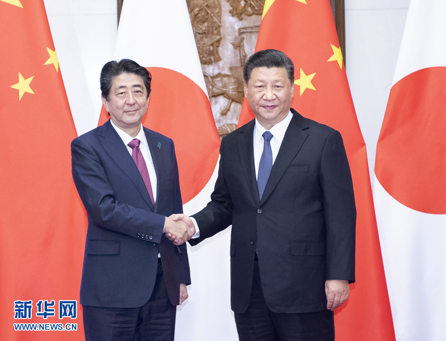 習(xí)近平歡迎安倍正式訪華,贊賞安倍近年來多次表明改善和發(fā)展中日關(guān)系的積極意愿。習(xí)近平指出,中日是近鄰,兩國利益高度交融。作為世界主要經(jīng)濟(jì)體和有重要影響的國家,中日關(guān)系長期健康穩(wěn)定發(fā)展,符合兩國人民根本利益,也是本地區(qū)和國際社會(huì)普遍期待。今年是中日和平友好條約締結(jié)40周年。1978年,兩國老一輩領(lǐng)導(dǎo)人締結(jié)和平友好條約,以法律形式確定了兩國持久和平友好大方向,為雙方開展互利合作、謀求共同發(fā)展以及妥善處理歷史、臺(tái)灣等敏感問題提供了堅(jiān)實(shí)遵循和保障。在雙方共同努力下,當(dāng)前中日關(guān)系重回正常軌道,重現(xiàn)積極勢(shì)頭。這值得雙方共同珍惜。雙方要遵循中日四個(gè)政治文件確立的各項(xiàng)原則,堅(jiān)持和平友好大方向,持續(xù)深化互利合作,推動(dòng)中日關(guān)系在重回正軌基礎(chǔ)上得到新的發(fā)展。