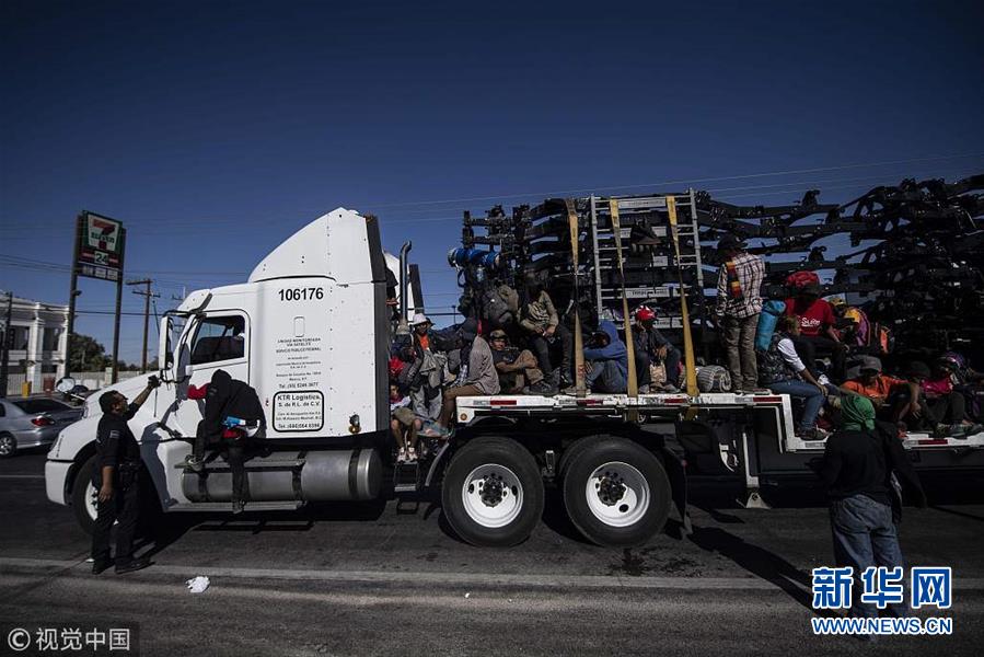 大批中美洲移民持續抵近美墨邊境 敞篷車上擠滿人