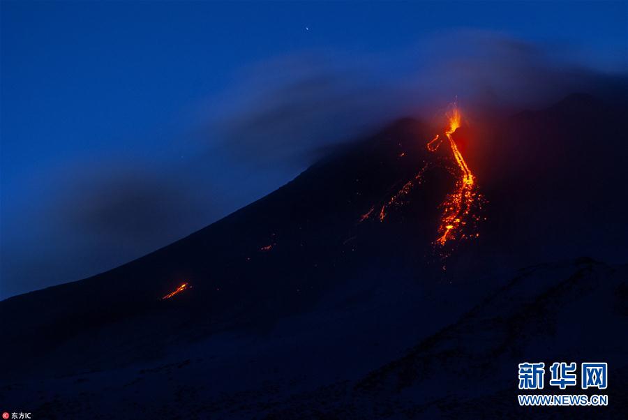 意大利埃特納火山噴發 熔巖噴射猶如煙火綻放
