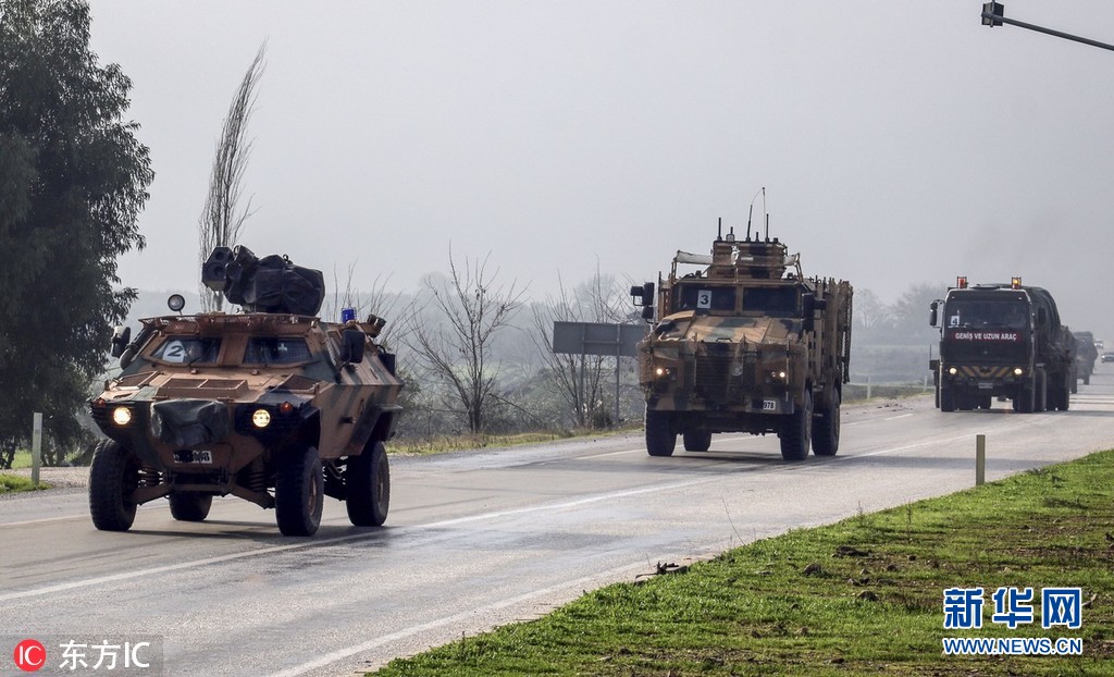 當地時間2018年12月24日,土耳其哈塔伊,土耳其裝甲車被派往敘利亞邊境的基利斯地區,增援邊境部隊。(圖片來源:東方IC)