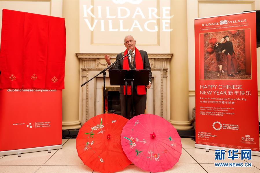 2月1日,在愛爾蘭首都都柏林市美術館,都柏林市長尼亞爾·林在中國新年慶典開幕式暨音樂會上致辭。新華社發