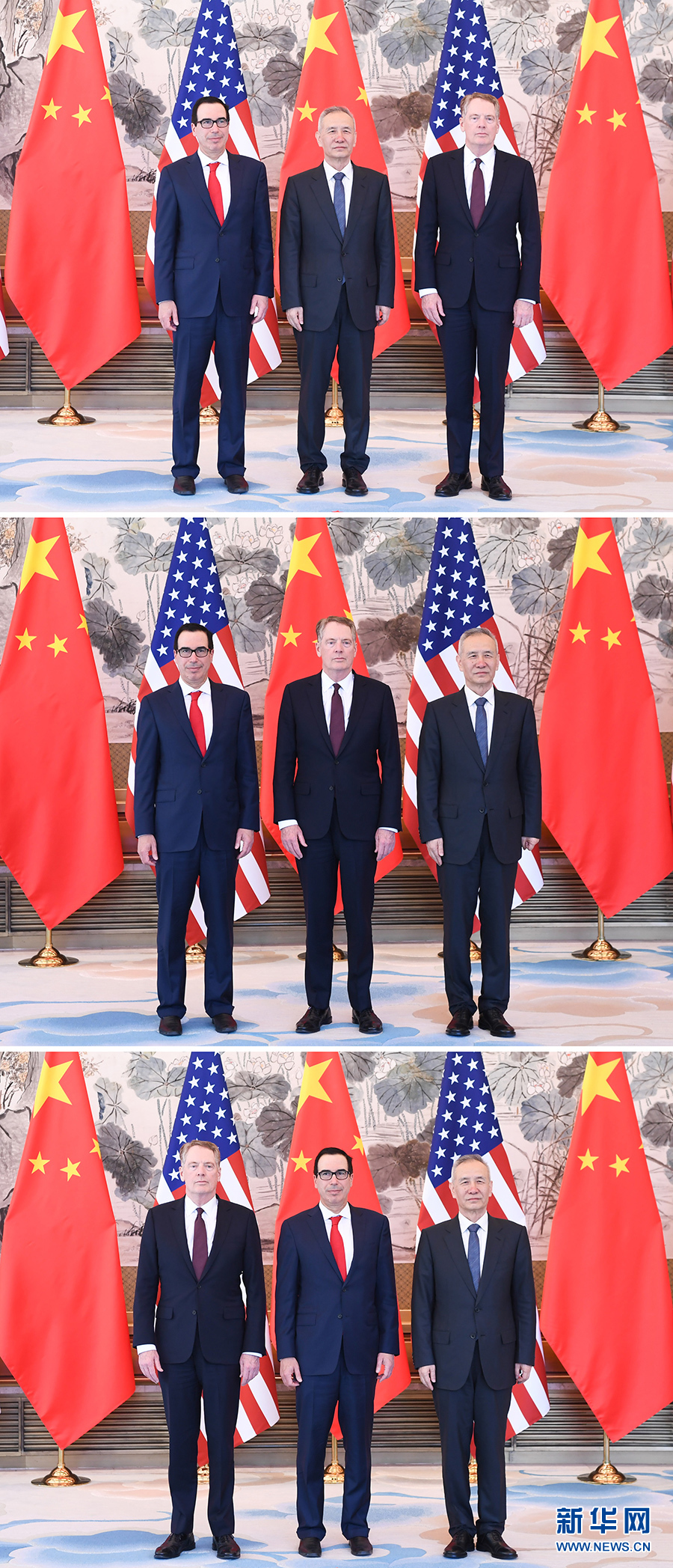 4月30日至5月1日,中共中央政治局委員、國(guó)務(wù)院副總理、中美全面經(jīng)濟(jì)對(duì)話中方牽頭人劉鶴與美國(guó)貿(mào)易代表萊特希澤、財(cái)政部長(zhǎng)姆努欽在北京舉行第十輪中美經(jīng)貿(mào)高級(jí)別磋商(拼版照片)。 新華社記者申宏、翟健嵐攝