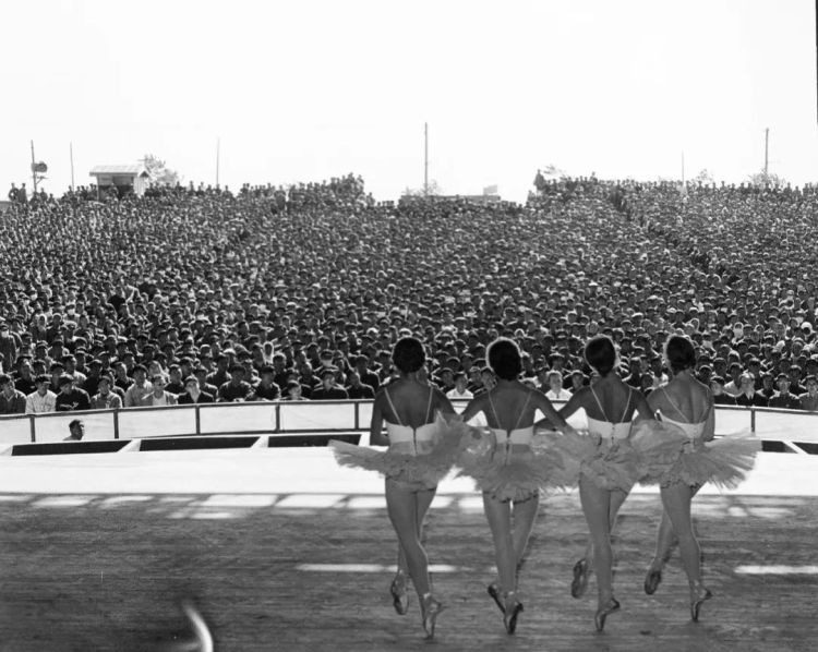 ↑蘇聯國立新西伯利亞歌劇芭蕾舞劇院為北京石景山鋼鐵廠工人演出。(1957年10月,鄭震孫)