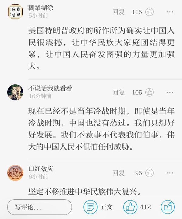 美國特朗普政府的所作所為確實讓中國人民很震撼,讓中華民族大家庭團(tuán)結(jié)得更緊,讓中國人民奮發(fā)圖強的力量更加強大。