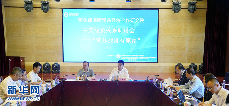 8月6日,主題為“貿(mào)易戰(zhàn)沒有贏家”的“中美經(jīng)貿(mào)關(guān)系研討會”在商務(wù)部國際貿(mào)易經(jīng)濟合作研究院舉行。新華社記者 金良快 攝
