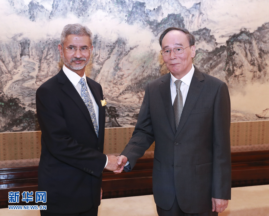 8月12日,國家副主席王岐山在北京中南海會(huì)見印度外長(zhǎng)蘇杰生。 新華社記者 龐興雷 攝