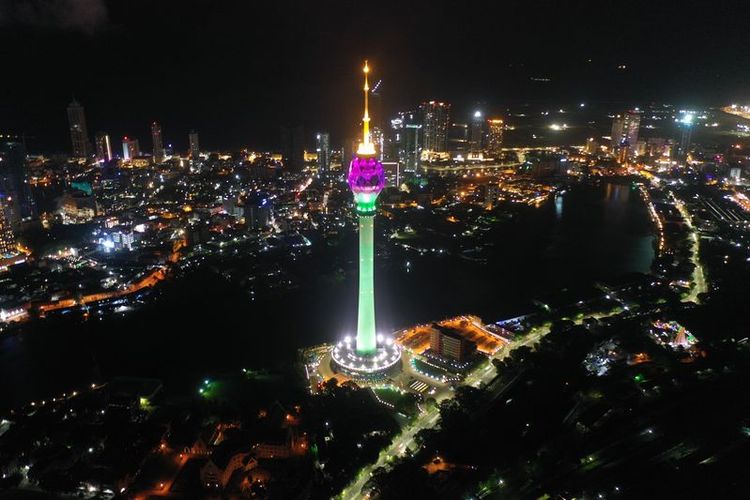 斯里蘭卡首都科倫坡蓮花電視塔9月16日晚舉行竣工慶典,蓮花電視塔是中斯兩國在“一帶一路”建設中的重要合作項目。(新華社發)