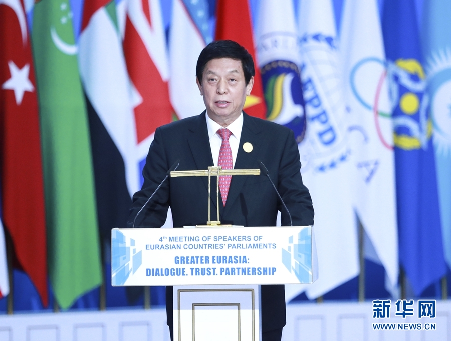 栗戰書指出,歐亞大陸是世界上面積最大、人口最多、發展最迅速、前景最廣闊的大陸,歐亞各國利益與共、安危與共。歐亞各國需要攜手努力,加強對話、信任、合作,促進和平、穩定、繁榮。栗戰書提出四點建議:一是加強溝通協商,尊重各國自主選擇的發展道路,弘揚伙伴精神,求同存異,擴大共識,增進政治互信;二是拓展經貿合作,促進貿易和投資自由化便利化,推動世界經濟開放、包容、普惠、平衡、共贏發展;三是密切人文交流,推動文化、教育、旅游、體育、媒體、青年等領域合作,促進民心相通;四是深化立法機構交往,落實好國家領導人達成的重要共識,助力國家關系發展,為深化歐亞合作增添亮點、提供保障。
