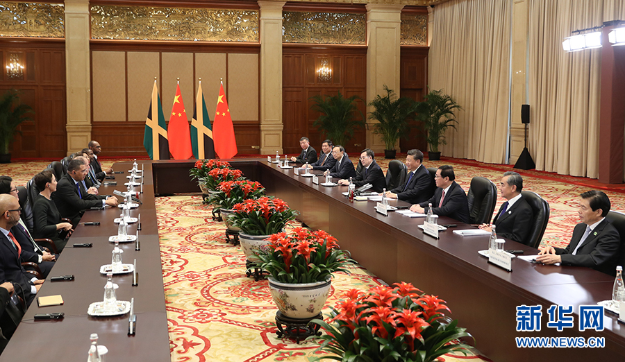 習近平強調,中牙雙方要保持高層交往,加強治國理政經驗交流,加強發展戰略對接,以共建“一帶一路”為契機,推動合作增速提質,密切人文交流。中方支持中國企業赴牙買加投資,歡迎更多牙買加特色優勢產品進入中國。中方愿同牙方一道,致力于推動中國同加勒比國家關系發展,并加強在國際和多邊領域合作,共同維護多邊主義和多邊貿易體制,捍衛發展中國家共同利益。