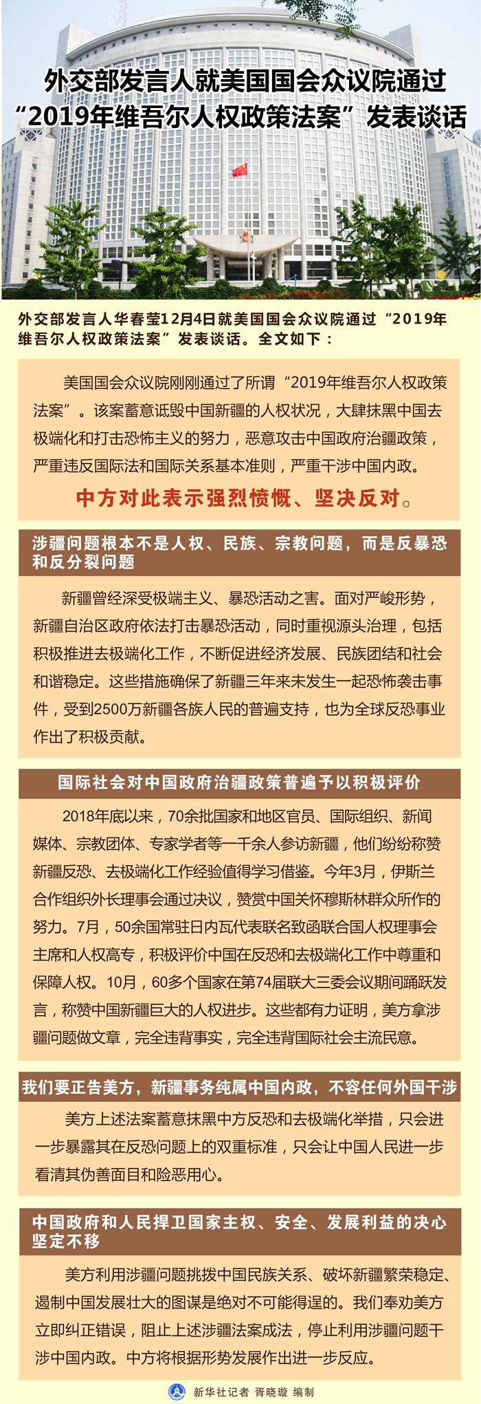 全國人大外事委員會就美國國會眾議院通過“2019年維吾爾人權政策法案”發表聲明