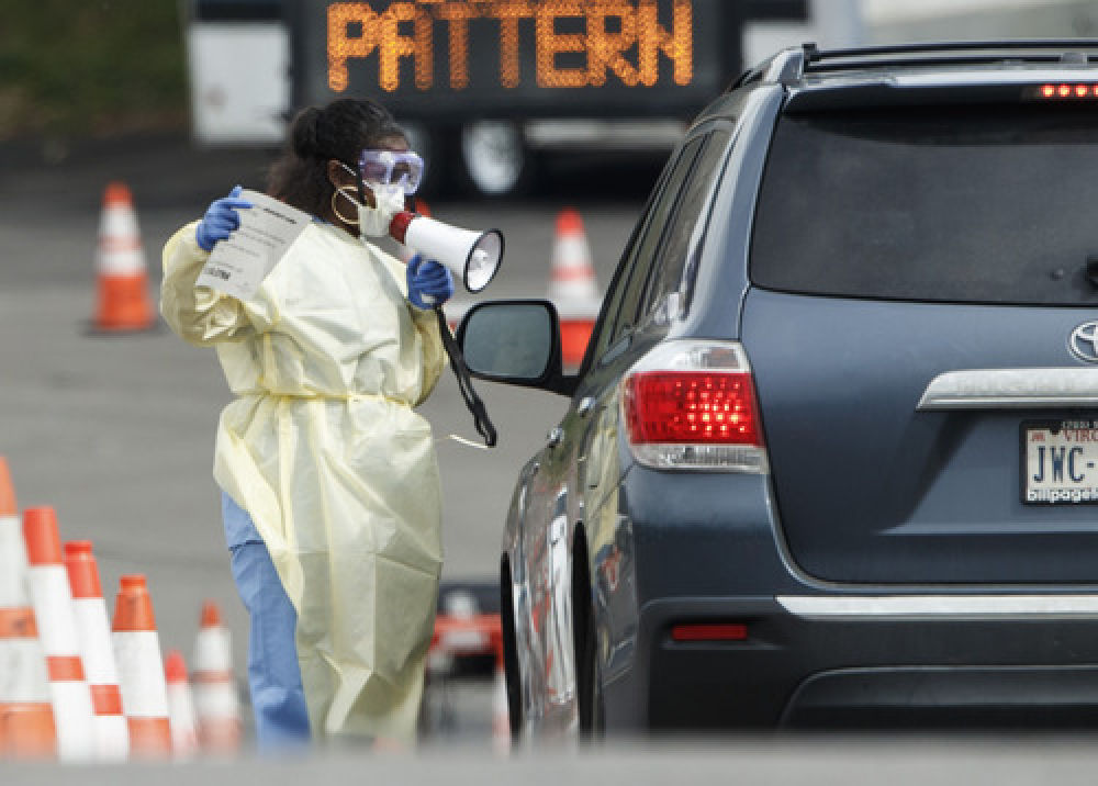 3月19日,在美國(guó)弗吉尼亞州阿靈頓,醫(yī)護(hù)人員在一處“免下車”新冠肺炎檢測(cè)點(diǎn)引導(dǎo)車輛。新華社發(fā)(沈霆攝)