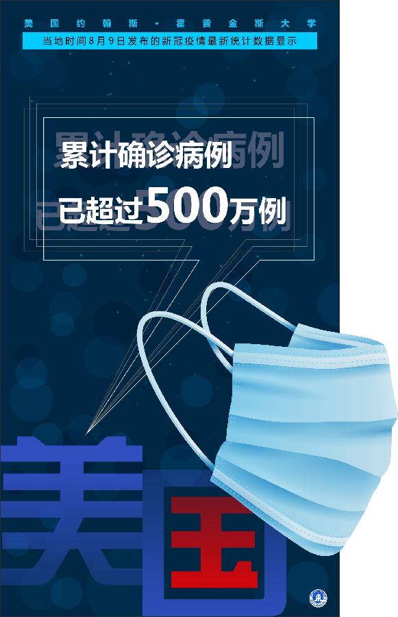 新華社紐約8月9日電? 美國約翰斯·霍普金斯大學(xué)9日發(fā)布的新冠疫情最新統(tǒng)計數(shù)據(jù)顯示,美國累計確診病例已超過500萬例。