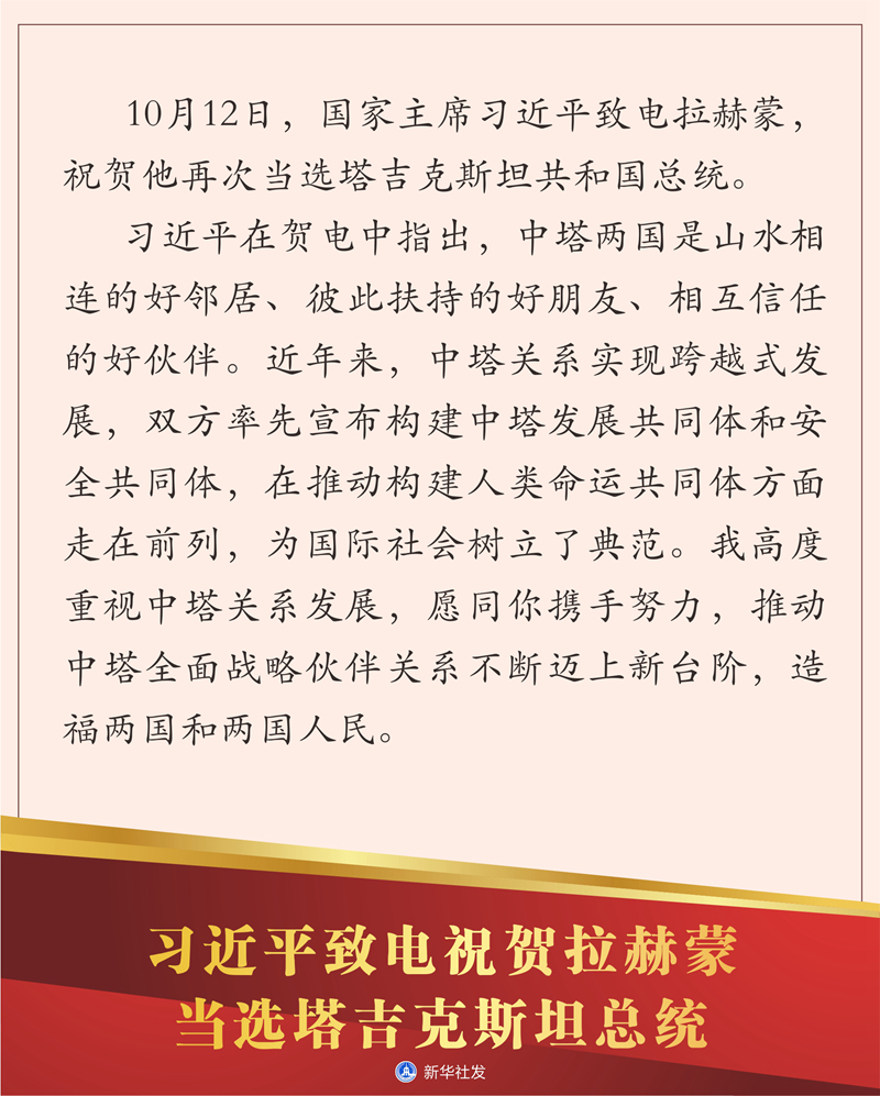 圖表:習(xí)近平致電祝賀拉赫蒙當選塔吉克斯坦總統(tǒng) 新華社發(fā)