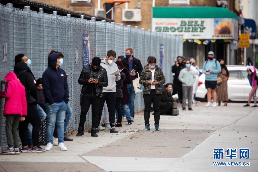 11月21日,人們在美國紐約排隊等待接受新冠病毒檢測。新華社發(郭克 攝)