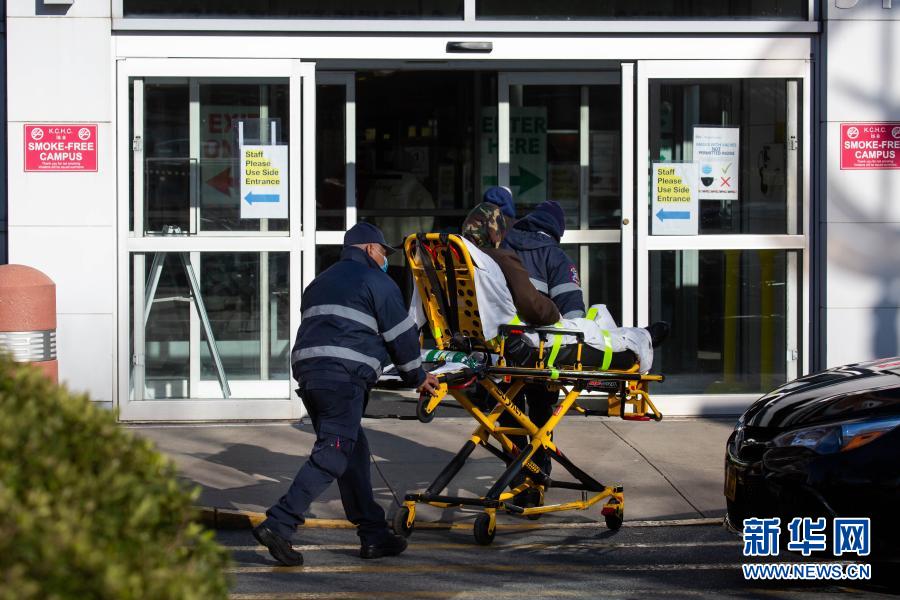 12月3日,在美國紐約,工作人員運(yùn)送一名患者。