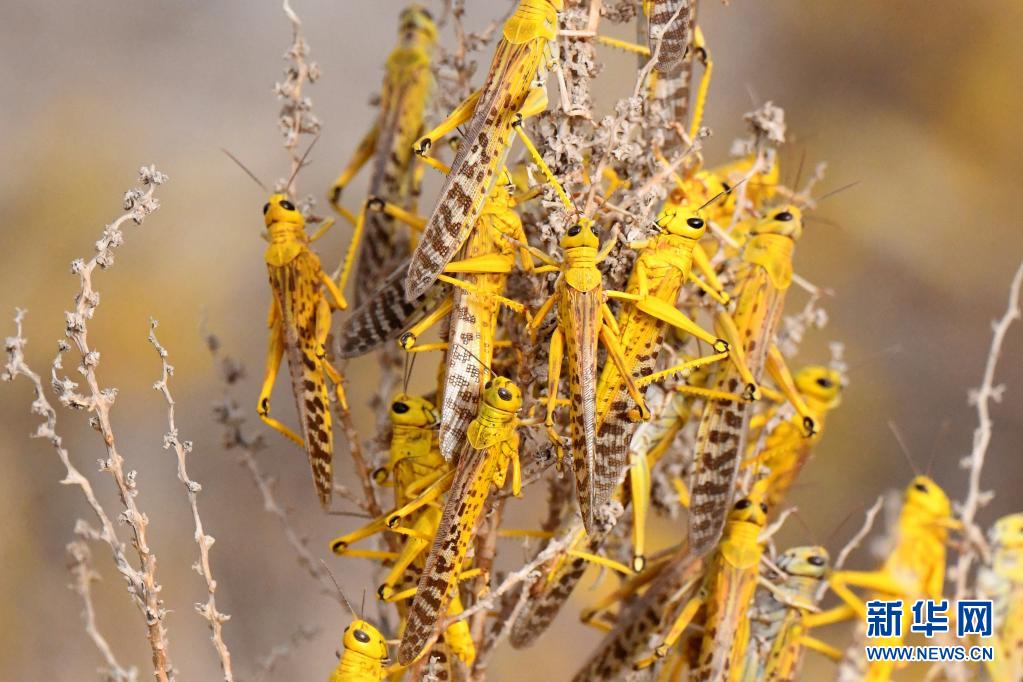 這是3月25日在科威特杰赫拉省拍攝的蝗蟲(chóng)。