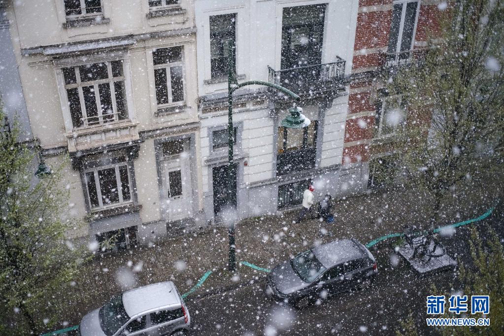 這是4月5日在比利時布魯塞爾拍攝的雪景。