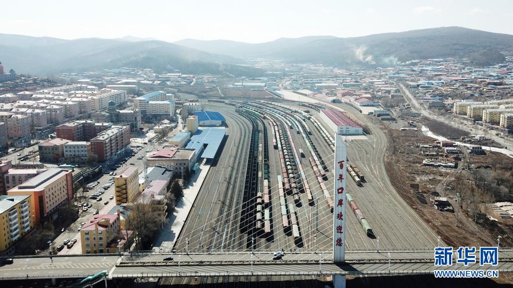 這是3月31日拍攝的綏芬河站南場,中歐班列從這里出入境(無人機照片)。新華社記者 王建威 攝