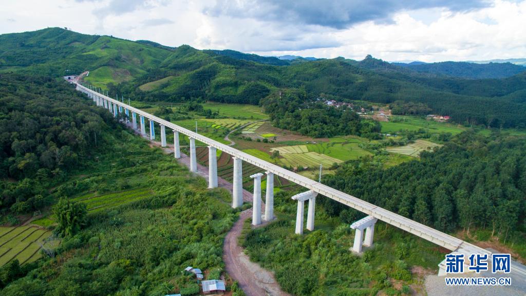 這是2020年7月29日在老撾北部拍攝的建設中的中老鐵路。新華社發(潘龍柱攝)