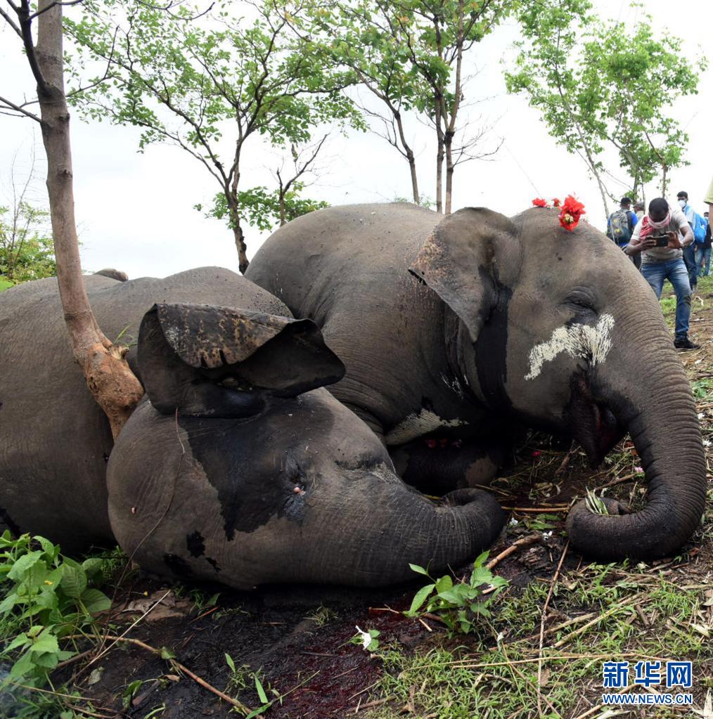 這是5月14日在印度阿薩姆邦納加奧恩地區拍攝的死去的象。