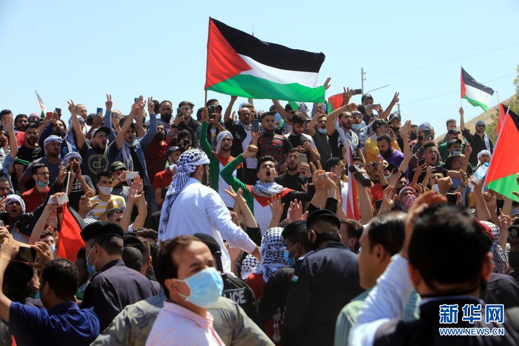 5月14日,人們在約旦凱拉邁附近舉行抗議示威活動,聲援巴勒斯坦民眾。