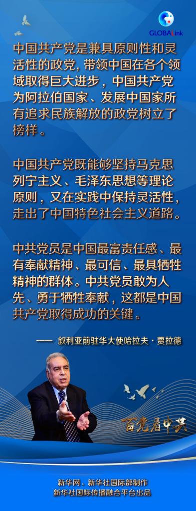 新華社大馬士革6月3日電(記者汪健 鄭一晗)敘利亞前駐華大使哈拉夫·賈拉德日前在大馬士革接受新華社記者專訪時(shí)說,中國共產(chǎn)黨是兼具原則性和靈活性的政黨,帶領(lǐng)中國在各個(gè)領(lǐng)域取得巨大進(jìn)步,“中國共產(chǎn)黨為阿拉伯國家、發(fā)展中國家所有追求民族解放的政黨樹立了榜樣”。